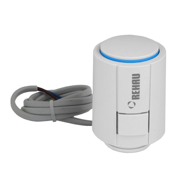 Termički servo pogon za ugradnju na regulacione ventile REHAU razdelnika, kao i upravljanje termostatskim ventilima industrijskih razdelnika. Bez struje zatvoren - NC. Indikator položaja sa gornje strane. Jednostavna montaža i demontaža zahvaljujući ventilskom adapteru i pritisnim tipkama. „First-Open-Funktion“ za grejanje u građevinskoj fazi (pre montaže sobnih termostata). Moguća montaža na različite ventile preko adaptera.